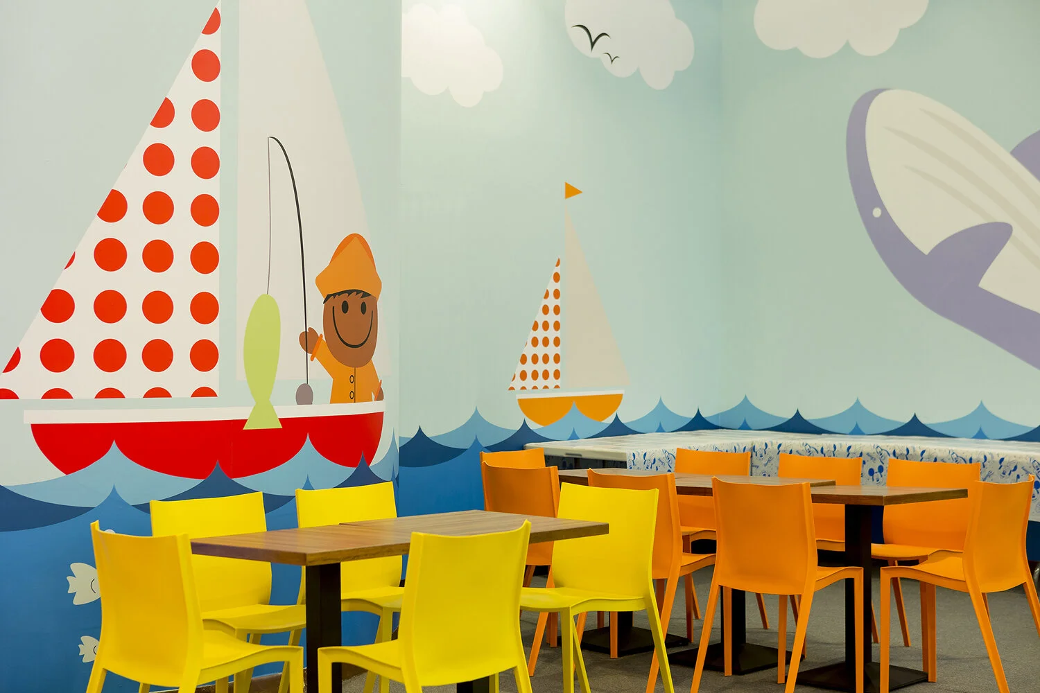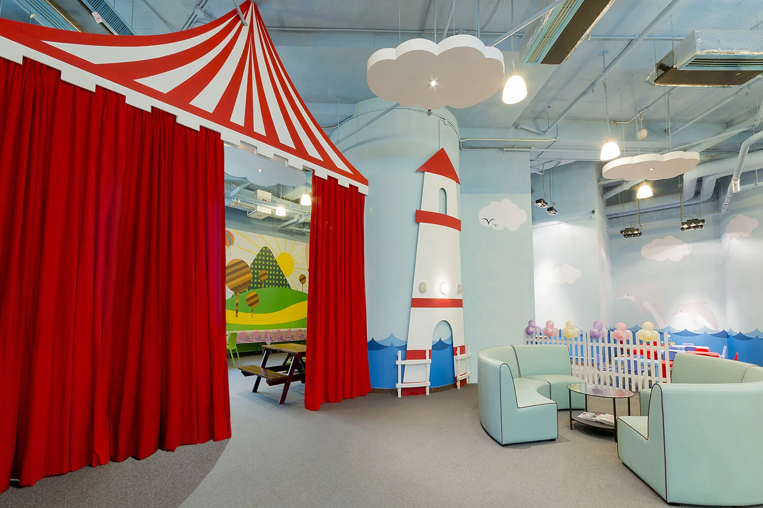 Our goal is to create various themed landscape experiences, including a circus tent, a yellow submarine, and a seaside lighthouse. The facility also features a dedicated toddler area (for ages 3 and under), encouraging a range of activities from cooking classes and private birthday parties to recreational play and arts and crafts.