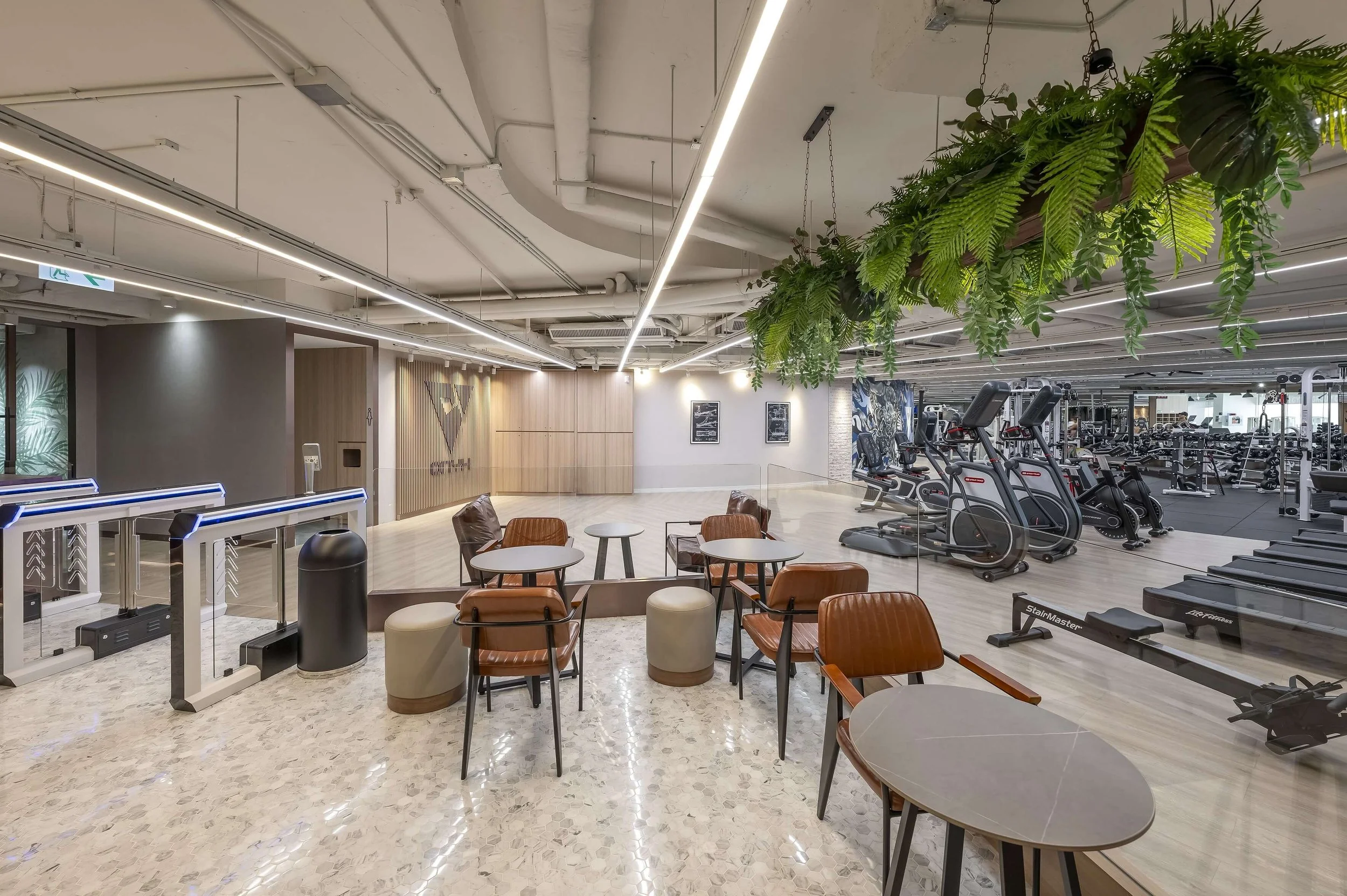 Our vision was to transform this 11,000-square-foot space into a vibrant lifestyle hub that inspires and revitalizes city dwellers and fitness enthusiasts. To achieve this, our design theme blends contemporary luxury aesthetics with a relaxed ambiance, creating an inviting and dynamic impression.