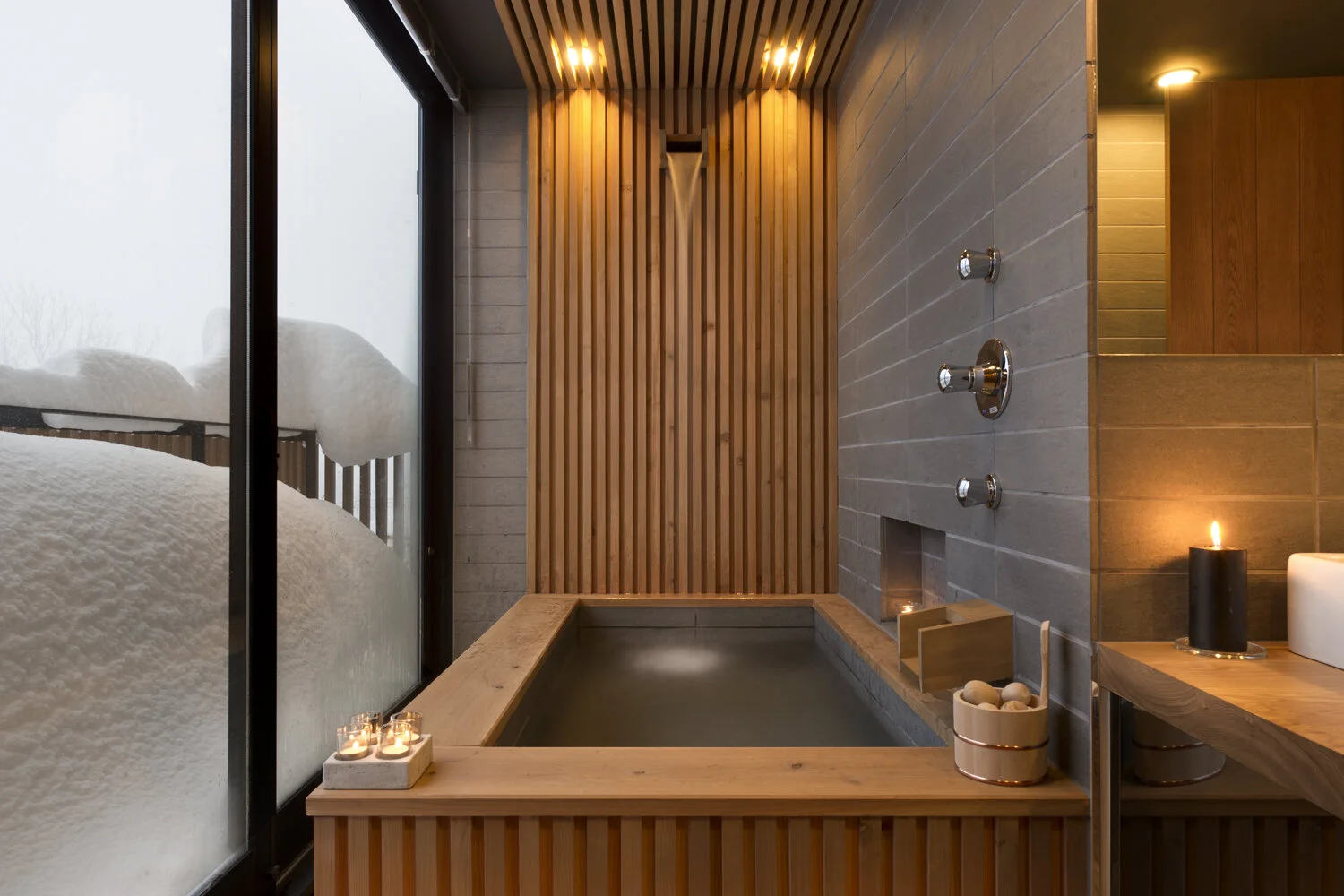 As an ode to the sense of place, an injection of traditional Japanese features was also incorporated into the design. This includes a spectacular private indoor spa in the form of a Japanese onsen connected to the outdoor balcony.